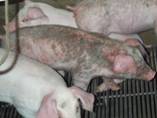 common/severe affecting the upper neck and hind legs - areas where the pig’s