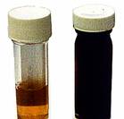 than 5% Photo shows a normal urine on the left and blood stained