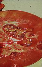 urine on the right from a sow with cystitis |