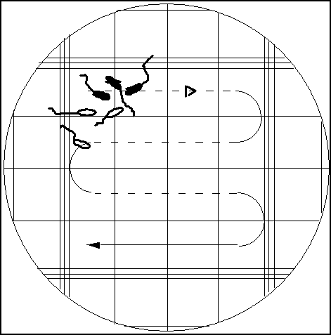 Each large square is divided into 16 smaller squares. Count the heads of the spermatozoa using a