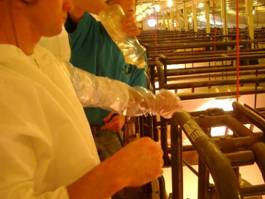 Do not over try. If there is no piglet present within the vagina it is better to administer oxytocin 5 iu/im and wait 15 minutes and examine again. |