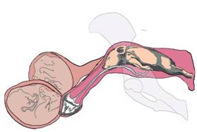 obstruction in the birth canal, simultaneous presentation of two fetuses,
