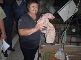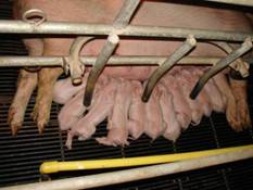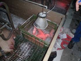 the newly born piglets, dry and place into the basket under a heat lamp |