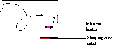 temperature in the sleeping area should be 30C (86F) at weaning to 24C (75F) at 30 kg. The remainder of the house can remain at 24C