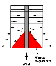 If you click on the various wind direction drawings, a short movie demonstrates the effect of air inside the building. In the video clips the wind comes from the left side of the screen.