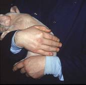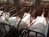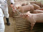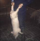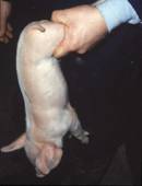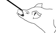 Older pigs examine within a crate or restrain using a loop around the upper jaw behind the canines.