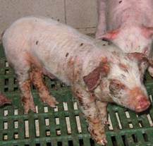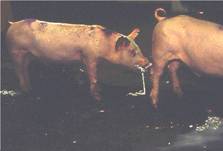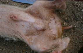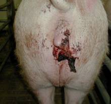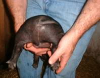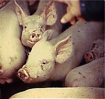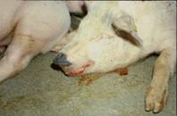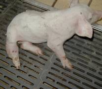 Note breaths per minute Pig normally breaths 20 times per minute. Over 45 and visible is abnormal. |