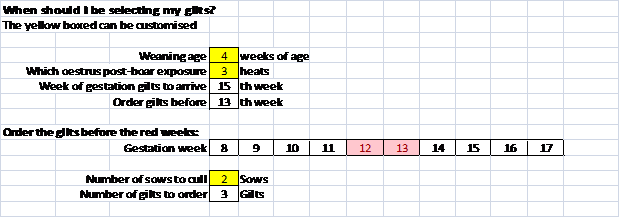 Note the number of gilts to order should be more than the number of sows to cull as the expected farrowing rate of gilts is lower than that expected for sows.