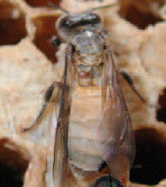 queen larvae are rarely infested with Tropilaelap mites, but the longer