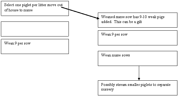 piglets onto these sows, one per litter, the smallest piglet. Leave for 2 weeks minimum on these sows.