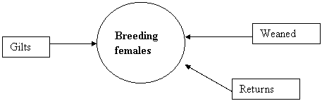 farrowing, every 2 or 3 weeks with sows being bred, farrowed,