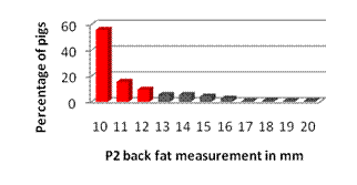 (head off) mean weight 72.2kg sd 7.1, P2 11.8 mm sd 3.5 But note heavier pigs have more